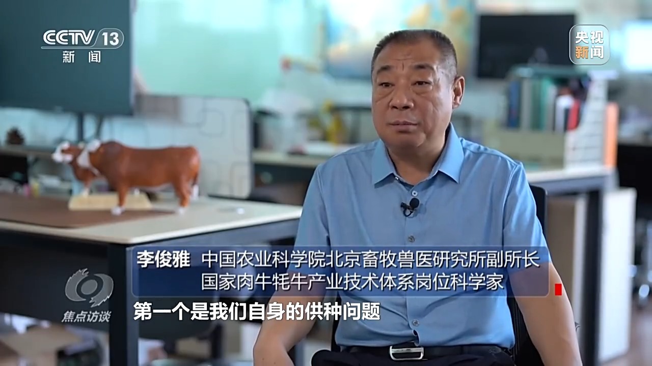 中國農(nóng)業(yè)科學(xué)院北京畜牧獸醫(yī)研究所副所長、國家肉牛牦牛產(chǎn)業(yè)技術(shù)體系崗位科學(xué)家 李俊雅:“核心種源依然依靠進口,存在很多問題,一是我們自身的供種問題,在特殊時期,如果我們不能從國外進口相應(yīng)的優(yōu)秀種質(zhì),我該怎么做;另外,我們引的這些國外的品種基本上都不是本品種的最優(yōu)秀種牛或者種牛的凍精。我們必須要培育出滿足我們國家主流市場供給型的品種。