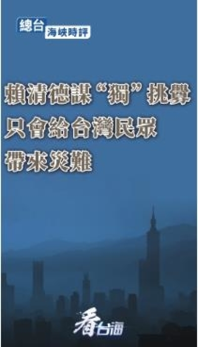 《國際銳評(píng)》:賴清德謀“獨(dú)”挑釁是臺(tái)海和平穩(wěn)定的禍根亂源