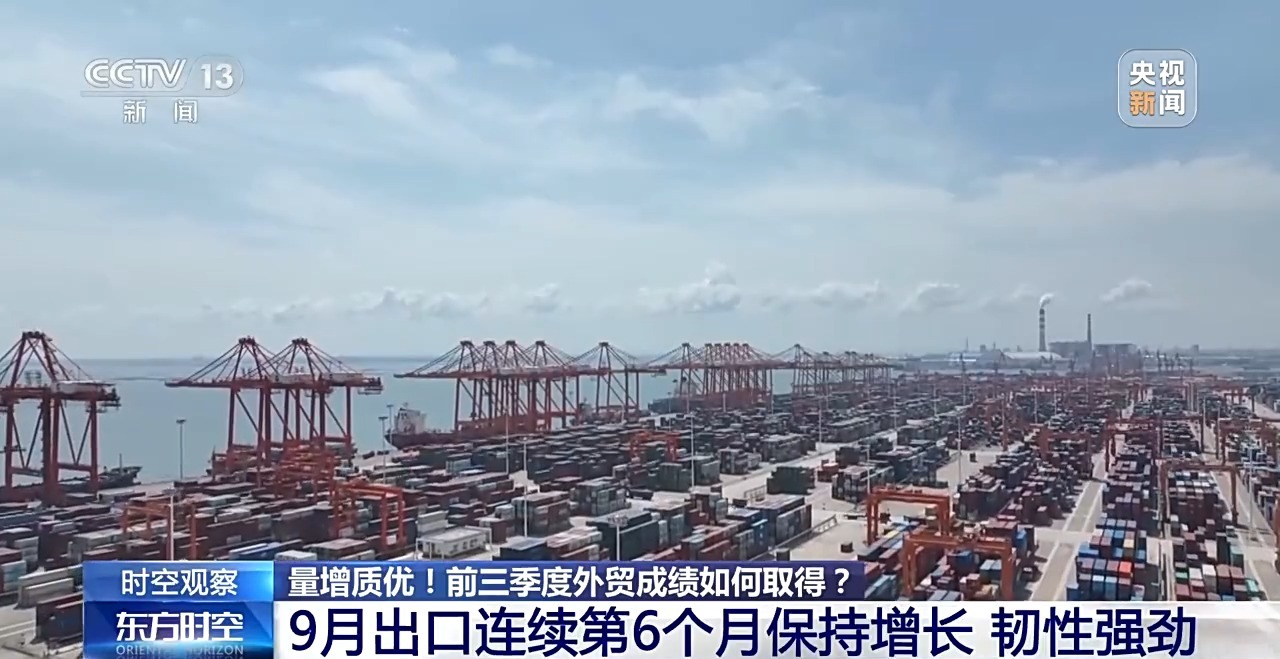 從前三季度的整體來看,9月份出口連續(xù)第6個月保持了增長,前三季度累計出口規(guī)模達到了18.62萬億元,創(chuàng)歷史同期新高,同比增長了6.2%,這個增速比最近10年同期的平均增速高了0.5個百分點。