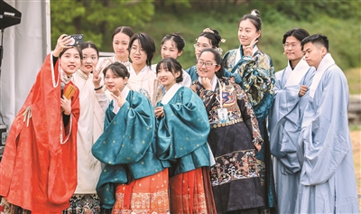 “穿著傳統(tǒng)服飾,常常伴隨著對古代禮儀和文化習(xí)俗的學(xué)習(xí)和效仿,如禮茶、撫琴等,年輕人得以更深入地了解和體驗(yàn)中華傳統(tǒng)文化的豐富內(nèi)涵,接受傳統(tǒng)文化的熏陶?!表n丹說。