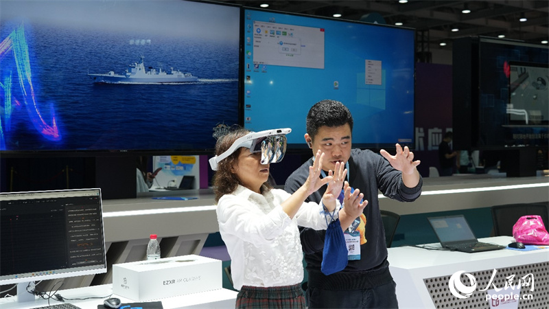 觀眾在新媒體技術展進行AR互動體驗。人民網(wǎng)記者 吳茜薇攝