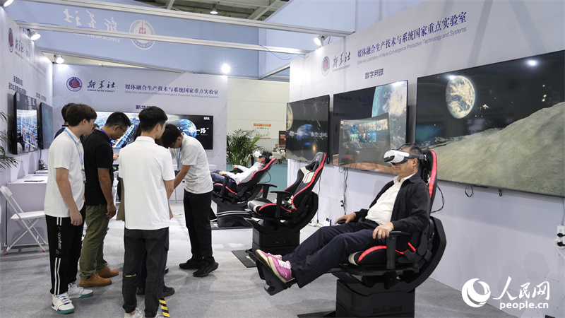 人民日報社傳播內(nèi)容認知全國重點實驗室展區(qū)吸引眾多觀眾駐足了解。人民網(wǎng)記者 吳茜薇攝