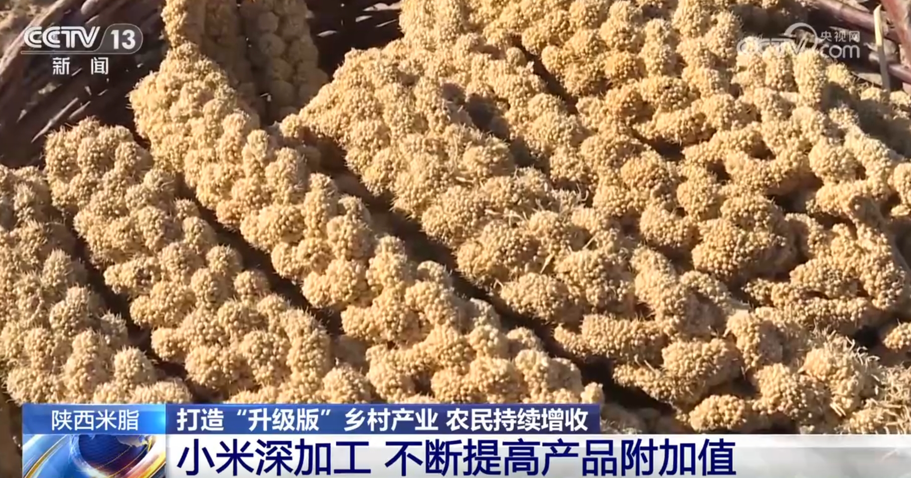 眼下正值陜北小米的收獲季節(jié),在陜西省米脂縣,農(nóng)戶們晾曬好的小米正在產(chǎn)業(yè)園里進行深加工。為了推動小米產(chǎn)業(yè)升級,全縣15家小米加工企業(yè)一頭與206個專業(yè)合作社、1.6萬戶谷農(nóng)建立訂單合作,另一頭則與科研院所合作,不斷研發(fā)推出休閑食品、保健食品。三年來,當?shù)丶庸て髽I(yè)年產(chǎn)值已從7.2億元增加到8.72億元。