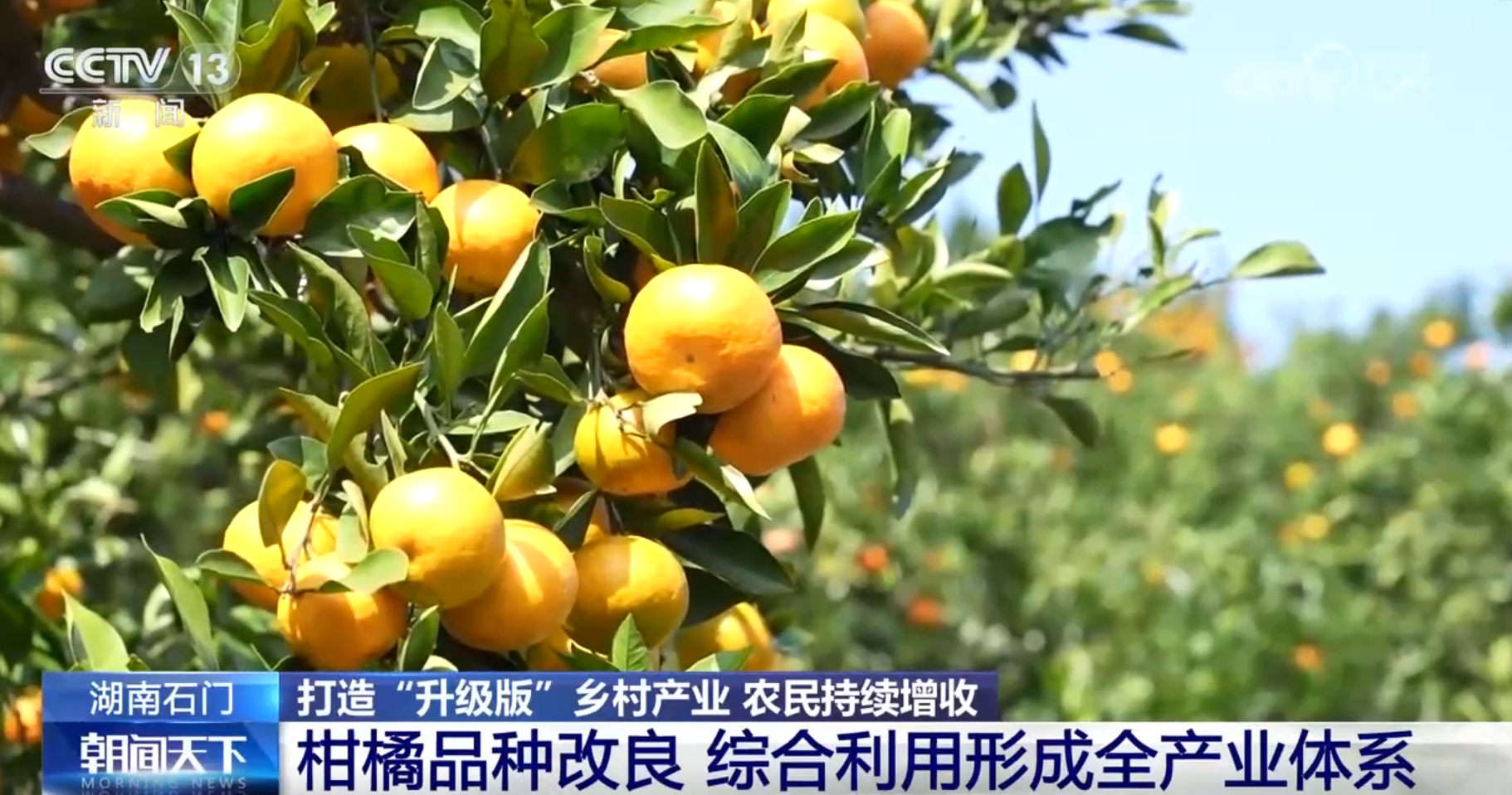 湖南省石門縣位于武陵山區(qū),眼下這里的柑橘迎來豐收。脫貧摘帽之后,當?shù)叵群笸度?700萬元對柑橘園進行了大面積品種改良,同時,構(gòu)建了從鮮果銷售、落果加工到罐頭、果汁深加工的全產(chǎn)業(yè)體系,讓不同規(guī)格的果子實現(xiàn)了100%利用。僅柑橘落果綜合利用一項就讓當?shù)剞r(nóng)民增收1.16億元。