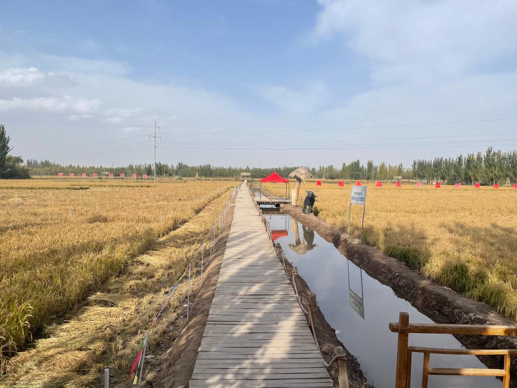 這是10月16日拍攝的喀什帕哈太克里鄉(xiāng)水稻基地。(新華社記者彭茜攝)