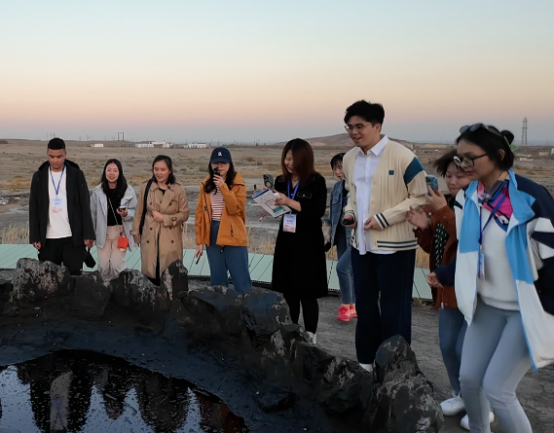 在黑油山最著名的景點——“跳跳泉油池”,黑油山景區(qū)講解員麥爾哈巴·肉扎洪帶領(lǐng)訪問團代表們利用壓力傳導作用,在它的周圍邊喊邊跳,眼見著它冒的泡泡越來越多,讓大家興奮不已。麥爾哈巴·肉扎洪說:“經(jīng)過三代人的努力,克拉瑪依變成了現(xiàn)在這樣宜居宜業(yè)宜游的現(xiàn)代化高品質(zhì)城市,希望可以把克拉瑪依艱苦創(chuàng)業(yè)的精神傳達給大家,也可以把這種活力傳達給大家。”