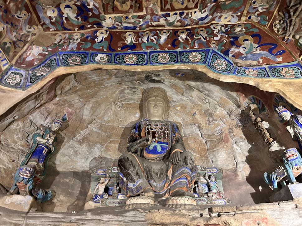 走進(jìn)一眼眼洞窟中時(shí),僅用眼睛欣賞已經(jīng)不滿(mǎn)足,外籍友人們頻頻用手機(jī)鏡頭拍攝影像,仿佛要將精美的造像全部記錄下以便慢慢回味。