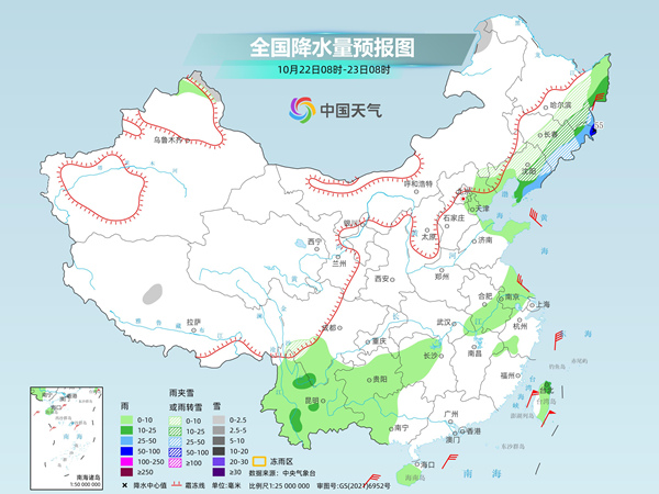 今明天(10月22日至23日),我國(guó)降水逐漸縮減,雨雪天氣主要出現(xiàn)在東北、西南等地部分地區(qū),東北部分地區(qū)有大到暴雨或雨夾雪,需注意防范。氣溫方面,受新一股冷空氣影響,東北地區(qū)今天降溫比較明顯;后天早晨,南方多地最低氣溫也可能創(chuàng)立秋后新低,公眾請(qǐng)注意適時(shí)調(diào)整著裝。