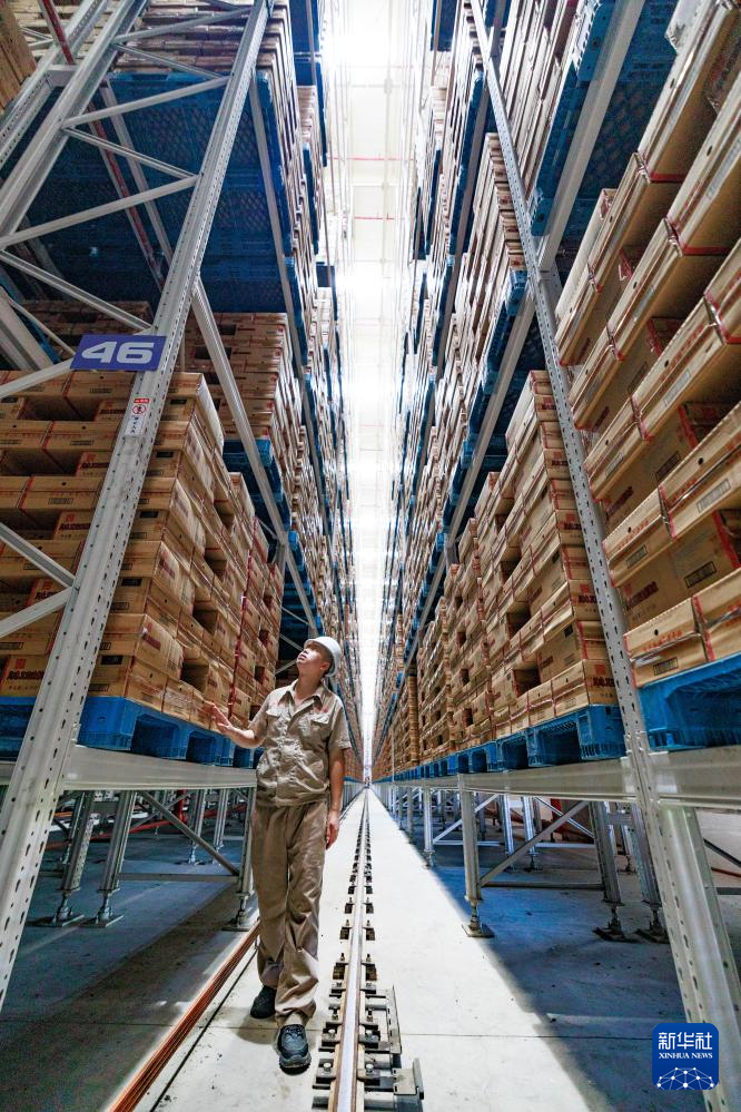工作人員在老干媽倉庫內(nèi)查看存儲的貨物(8月20日攝)。新華社記者 劉續(xù) 攝