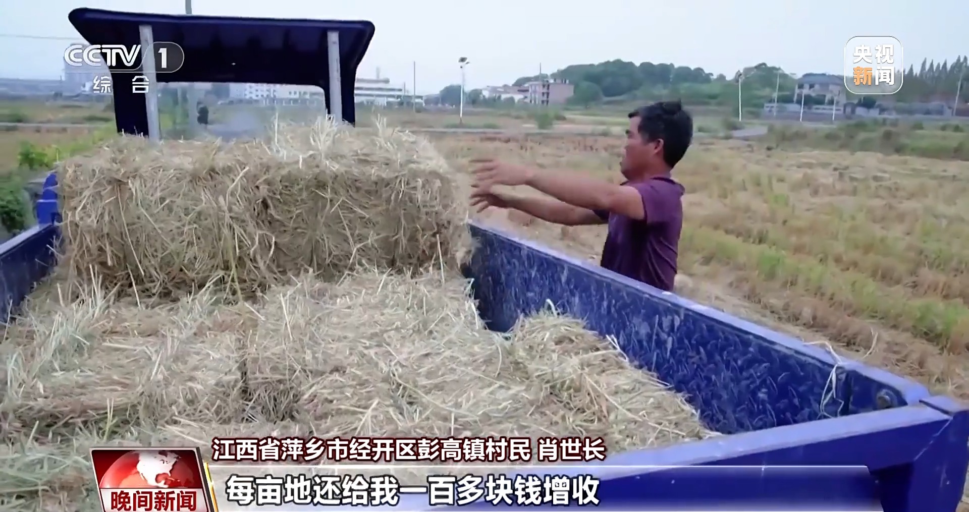 江西省萍鄉(xiāng)市經(jīng)開區(qū)彭高鎮(zhèn)村民 肖世長(zhǎng):秸稈處理很麻煩,運(yùn)走還需要自己額外花錢請(qǐng)人過來幫忙。現(xiàn)在他們上門回收,每畝地還給我一百多塊錢增收。