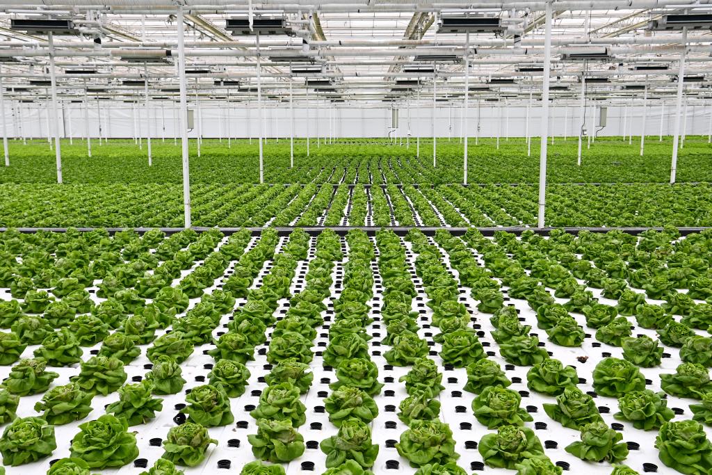 10月26日,楊凌智慧農(nóng)業(yè)示范園智慧溫室內(nèi)通過無土栽培技術(shù)種植的蔬菜。新華社記者 鄒競一 攝