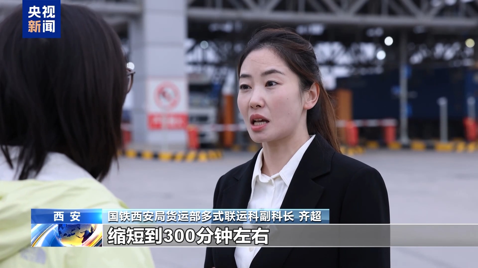 國鐵西安局貨運部多式聯(lián)運科副科長 齊超:貨物集結時間從原來的7天左右縮短到3天左右,貨物的進站作業(yè)時間從原來將近900分鐘縮短到300分鐘左右。