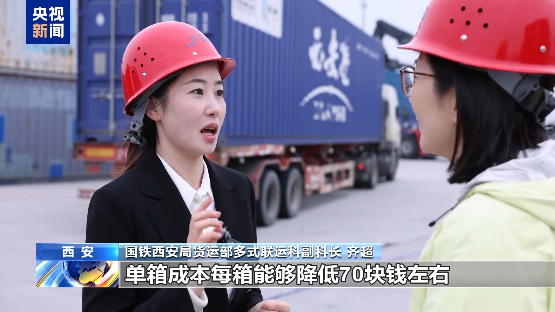 國鐵西安局貨運部多式聯(lián)運科副科長 齊超:這個降本非常明顯,比如原來可能拉一次200塊錢,一天可能最多跑兩趟,賺400塊錢。如果現(xiàn)在能一天跑五趟,就能賺1000塊錢,那單趟成本就愿意降低。我們大概測算了一下,經(jīng)過改善之后,單箱成本每箱能夠降低70塊錢左右。