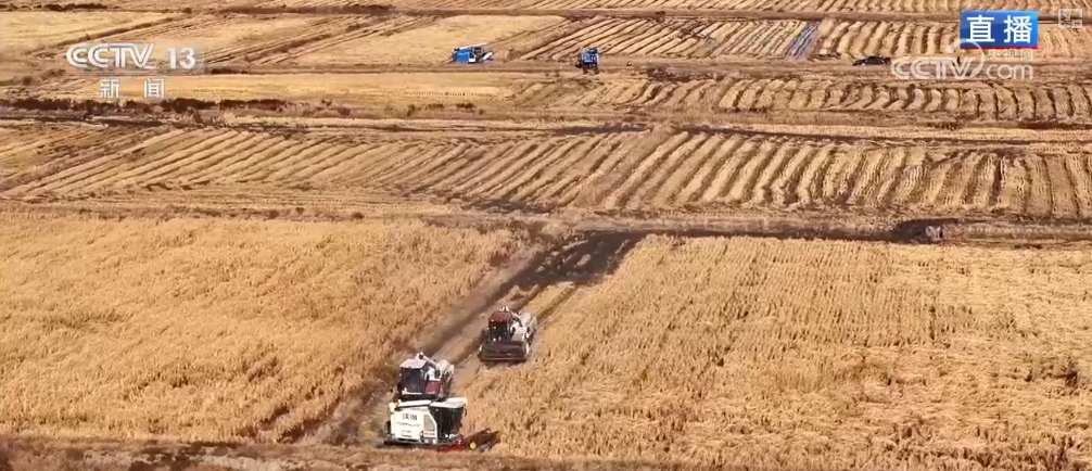 農(nóng)機往來秋收忙 畝產(chǎn)突破600公斤