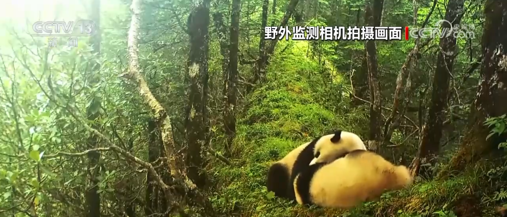 近日,四川阿壩州松潘縣林業(yè)和草原局的巡護人員在收集整理白羊自然保護區(qū)野外監(jiān)測相機時,發(fā)現(xiàn)兩只野生大熊貓同框嬉戲的畫面。