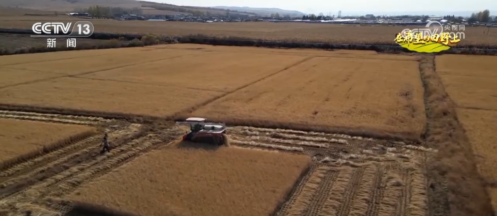 在延吉市朝陽川鎮(zhèn)太興村的稻田里,村民駕駛著收割機(jī)在田間作業(yè),收割、脫粒、裝車,一氣呵成,一大片稻田很快就收割完成。