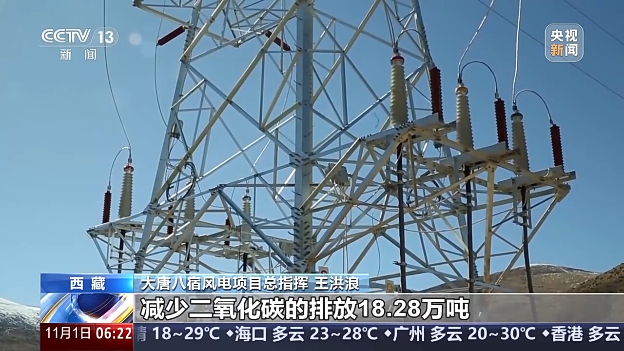 大唐八宿風(fēng)電項目總指揮 王洪浪:項目投產(chǎn)后每年可以新增清潔電力2.23億度以上,可節(jié)約標(biāo)(準(zhǔn))煤約7.31萬噸,減少二氧化碳的排放18.28萬噸。可以滿足23萬人全年生活用電。在保障人民群眾冬季供暖和電力安全供應(yīng)的同時,可有效地改善西藏自治區(qū)的能源結(jié)構(gòu)。