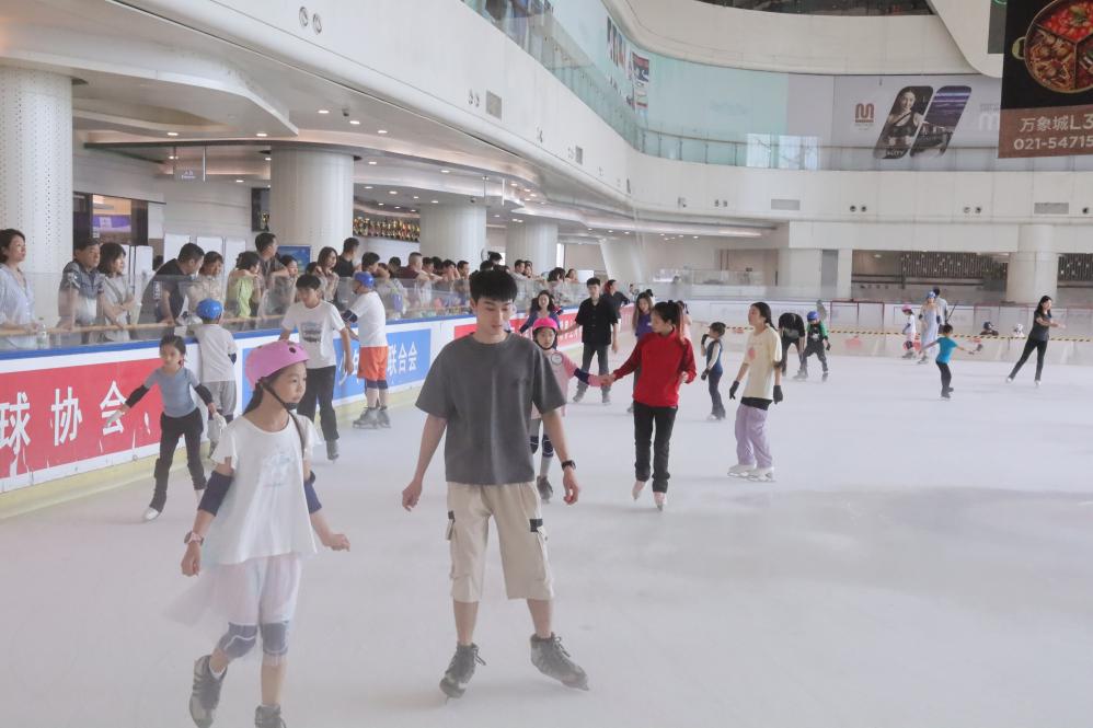 位于上海市閔行區(qū)的華潤上海萬象城冰場,今年暑假日均接待量超過340人次,其中約80%是前來訓(xùn)練的青少年學(xué)員。上海市民王蓓的女兒長期在此訓(xùn)練,商圈餐飲、游樂、電影院、書店、購物等業(yè)態(tài)齊全,女兒滑冰訓(xùn)練結(jié)束后,一家人在此休閑一整天。