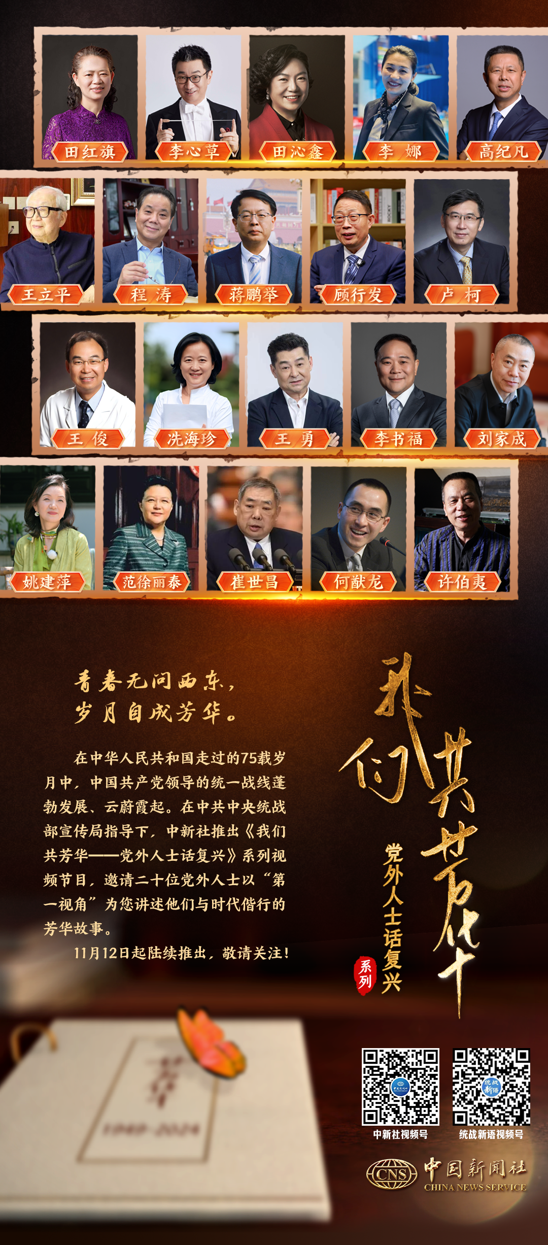 跨山越海,我們赴約依舊,雨雪風(fēng)霜,待你芳華如初。在中共中央統(tǒng)戰(zhàn)部宣傳局指導(dǎo)下,中新社推出特別策劃《我們共芳華——黨外人士話復(fù)興》,“第一視角”講述新中國走過的七十五載光陰。歷時八個月傾情制作,百余場次拍攝記錄二十位嘉賓的芳華記憶。超強嘉賓陣容,請戳海報↓↓↓