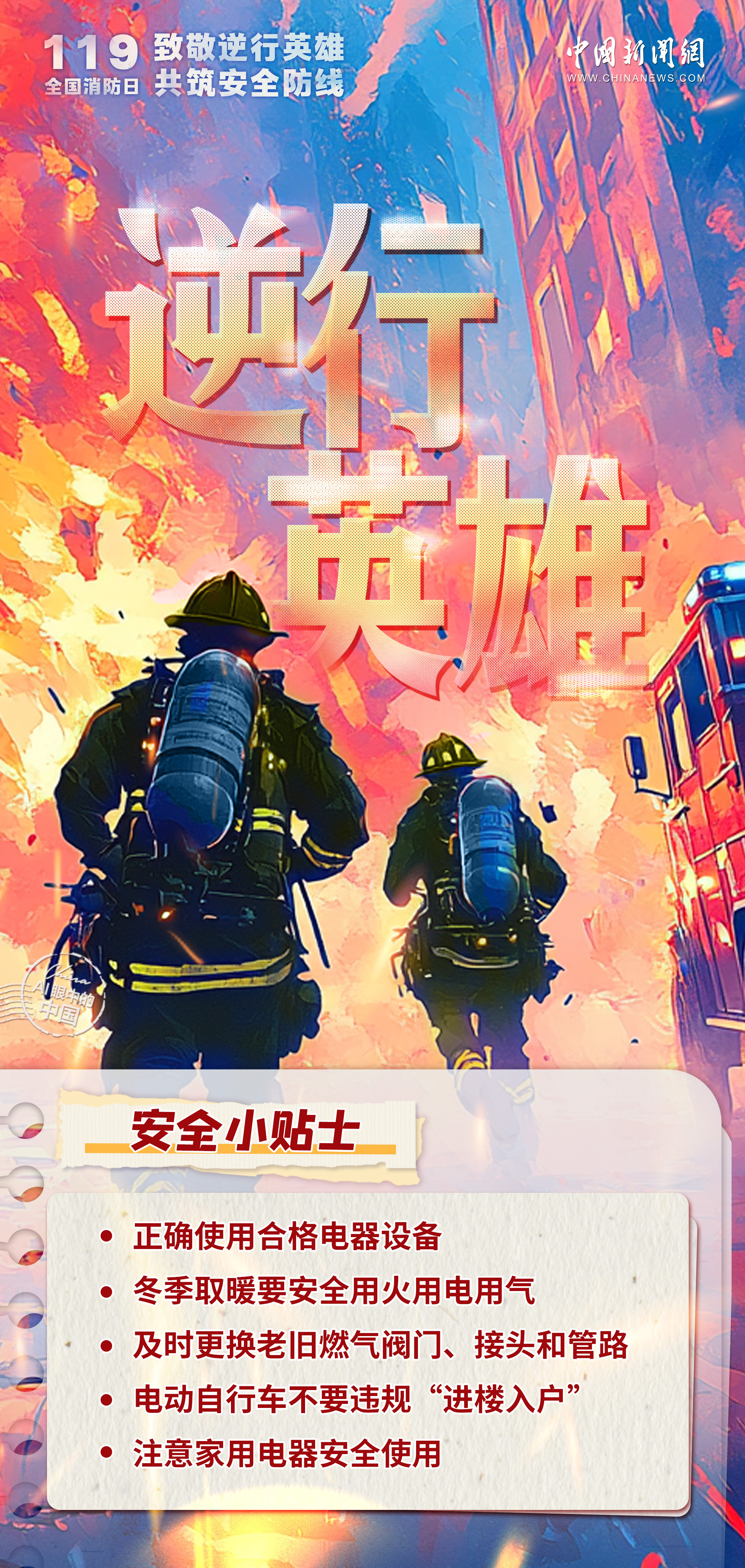 他們是逆火而行的英雄,是守護(hù)生命與財(cái)產(chǎn)的無畏戰(zhàn)士。無論是城市的高樓,還是偏遠(yuǎn)的山林,只要火警一響,消防員們就義無反顧地沖向危險(xiǎn)的前線,用汗水和熱血詮釋著責(zé)任與擔(dān)當(dāng)。今天是第33個(gè)全國消防日,讓我們一起致敬人民安全守護(hù)者,共筑消防安全墻。