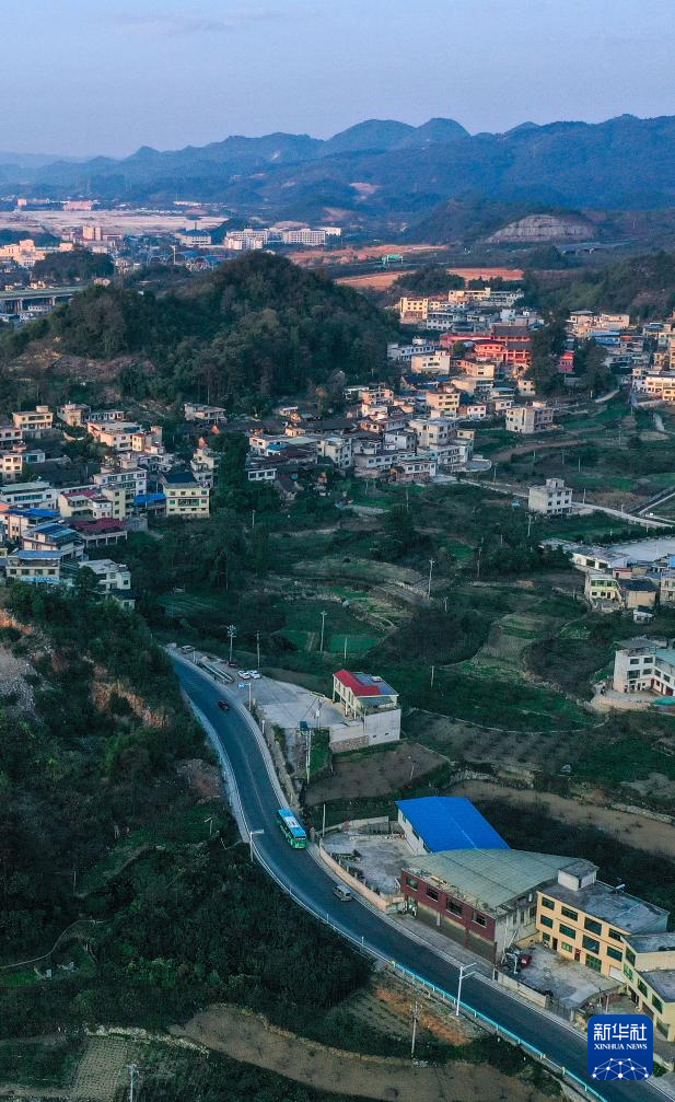 11月10日,252路公交車行駛在貴陽市烏當(dāng)區(qū)水田鎮(zhèn)境內(nèi)(無人機(jī)照片)。