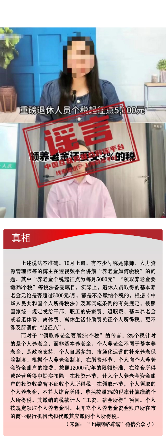 領(lǐng)取養(yǎng)老金要繳3%個稅,起征點(diǎn)5000元/月?