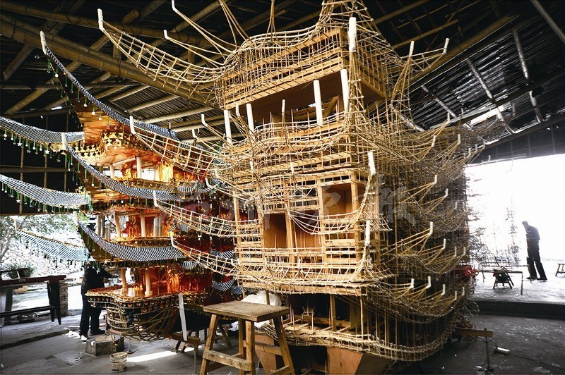 做“首飾龍”的匠人,沒(méi)有圖紙,全憑師傅一生的經(jīng)驗(yàn)來(lái)規(guī)劃不同船型和運(yùn)動(dòng)方式。林順奎制作的首飾龍身上有大大小小80多個(gè)樓閣、亭臺(tái),濃縮了《封神榜》《西游記》等80多出戲,有近300個(gè)形態(tài)各異、從事各行各業(yè)的古今人物。