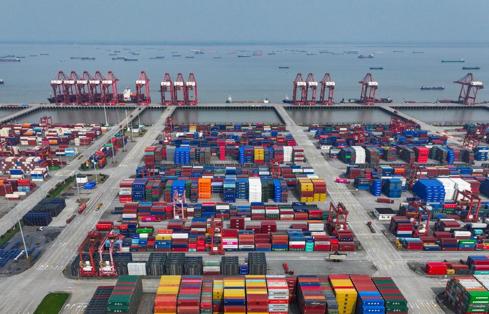 江蘇省蘇州港太倉港區(qū)集裝箱碼頭(無人機(jī)照片,10月10日攝)。新華社記者 李博 攝