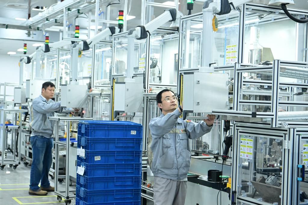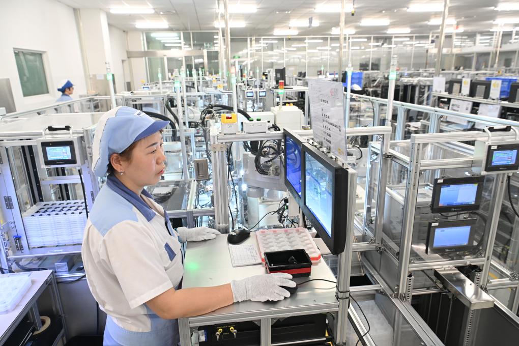 在江蘇省太倉港經(jīng)濟(jì)技術(shù)開發(fā)區(qū)博馬(蘇州)控股有限公司,生產(chǎn)技術(shù)人員在生產(chǎn)汽車渦輪增壓器產(chǎn)品(6月19日攝)。新華社發(fā)(計海新 攝)
