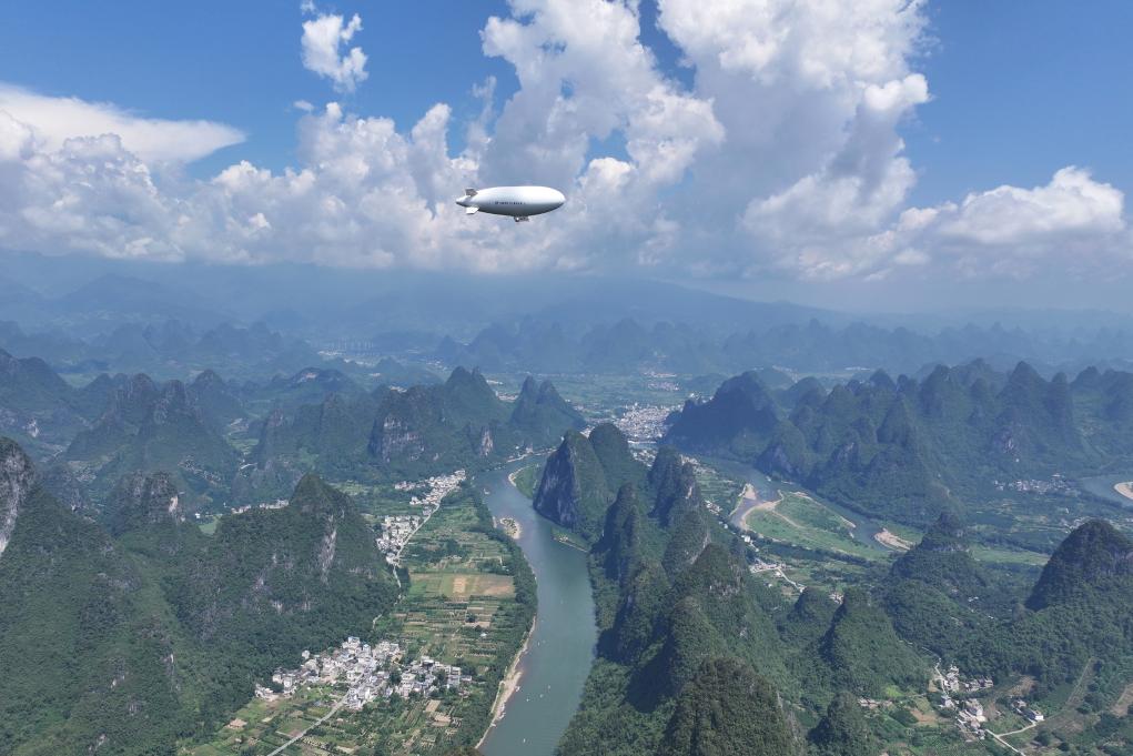 9月14日,“祥云”AS700載人飛艇在廣西陽(yáng)朔進(jìn)行演示飛行(無(wú)人機(jī)照片)。新華社發(fā)(中國(guó)航空工業(yè)集團(tuán)特種飛行器研究所供圖)