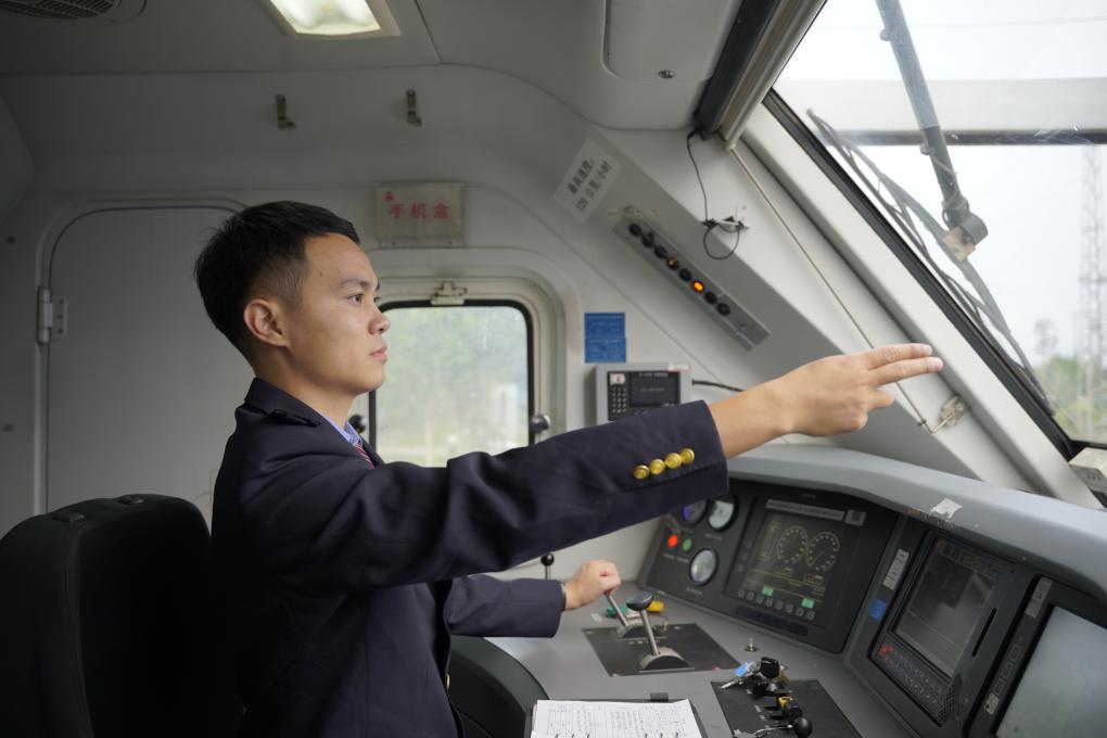 11月15日,李峰正在駕駛中歐班列。新華社發(fā)