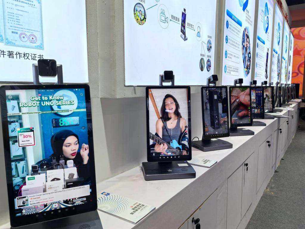 在廣東智慧音視頻科技有限公司的展位前,一排多功能直播智慧機(jī)引起了觀眾的濃厚興趣。該公司跨境電商負(fù)責(zé)人告訴記者,越來(lái)越多的中小企業(yè)嘗試“直播+電商”的出海模式,這款產(chǎn)品內(nèi)嵌了短視頻直播的云導(dǎo)播臺(tái),同時(shí)借助外貿(mào)專線,方便企業(yè)高效切入海外興趣電商的“賽道”。
