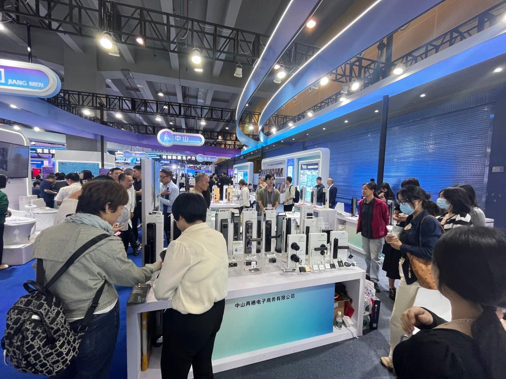 這次,不少產(chǎn)業(yè)集群、工業(yè)園區(qū)攜供應(yīng)鏈上下游企業(yè)集體參展。廣東省中山市小欖鎮(zhèn)智能鎖具產(chǎn)業(yè)集群代表企業(yè),正通過短視頻和直播向海外客戶推介最新的鎖具產(chǎn)品。“在政府的引導(dǎo)下,企業(yè)出海的步伐逐步加快,中山鎖具已推向全國(guó)、走向世界?!敝猩絻伤腚娮由虅?wù)有限公司業(yè)務(wù)經(jīng)理?xiàng)钣襁B說(shuō)。