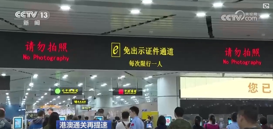 總臺記者 趙菁:我現(xiàn)在是在拱北口岸的旅客出境大廳的“免出示證件”通道,從今天0時起,因私經(jīng)常往來港澳地區(qū)的人員,可走這條“免出示證件”通道通行。