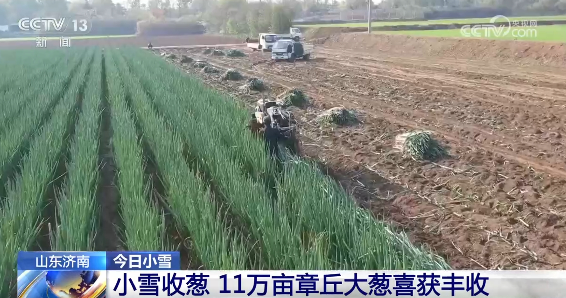 俗語說“小雪收蔥,不收就空”,小雪節(jié)氣是北方大蔥收獲的時候。在山東濟南,這里自古就有種植大蔥的傳統(tǒng),眼下11萬畝章丘大蔥喜獲豐收,村民們正忙著收蔥、賣蔥,種植基地里,大蔥收獲機的應(yīng)用大大提高了采收效率。