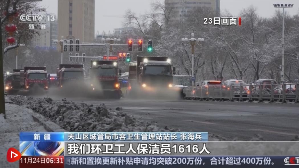 11月22日晚到11月23日,昌吉州昌吉市、阜康市、瑪納斯縣等地也迎來降雪,多地城管部門出動清雪車,開展清雪作業(yè),保障道路通暢。