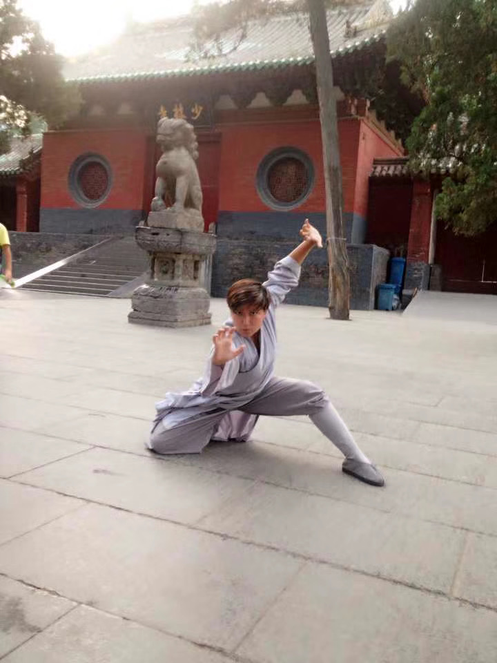 地里娜爾在河南少林塔溝武校學(xué)習(xí)期間,在少林寺門口留影。受訪者供圖