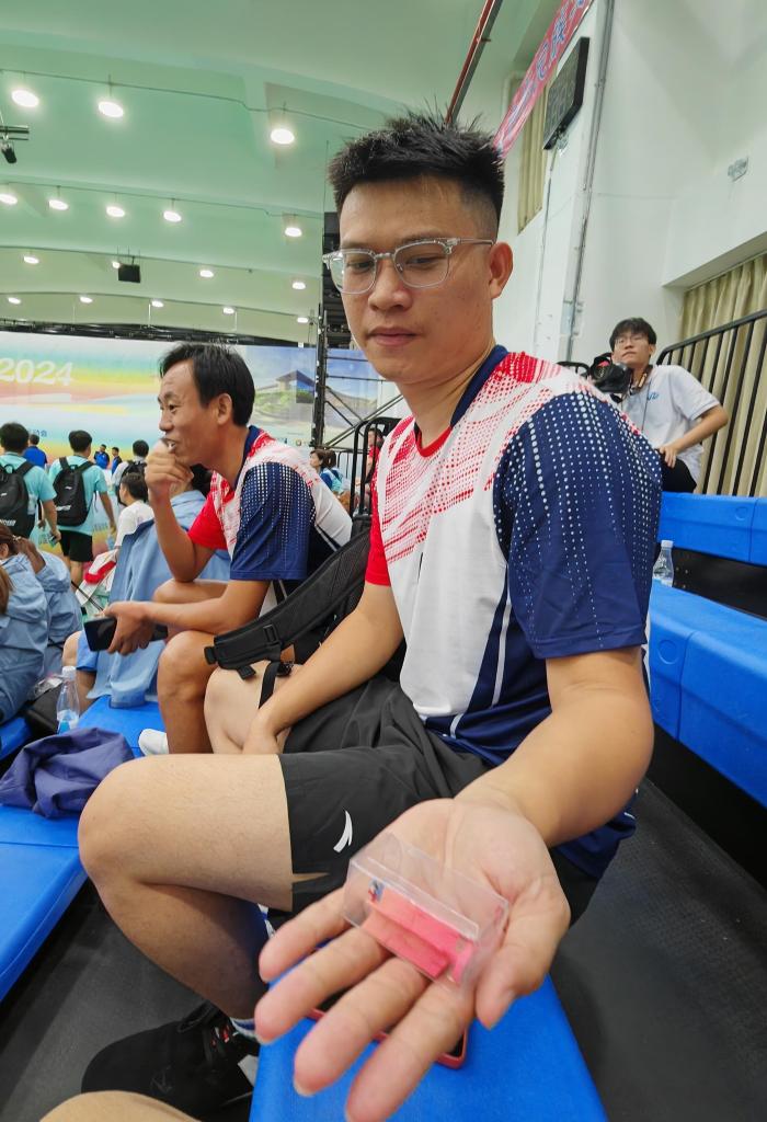 “香港隊(duì)很厲害,沒(méi)想到他們還給我們準(zhǔn)備了禮物,挺驚喜的?!蔽鞑仃?duì)毽球運(yùn)動(dòng)員韋盛森從褲兜里掏出一個(gè)精致的粉色毽球掛飾給記者看,并懊惱自己沒(méi)有準(zhǔn)備禮物?!百惡笪覀兒拖愀坳?duì)說(shuō)了很多互相鼓勵(lì)的話,我們希望找機(jī)會(huì)再和他們交流?!?/p>