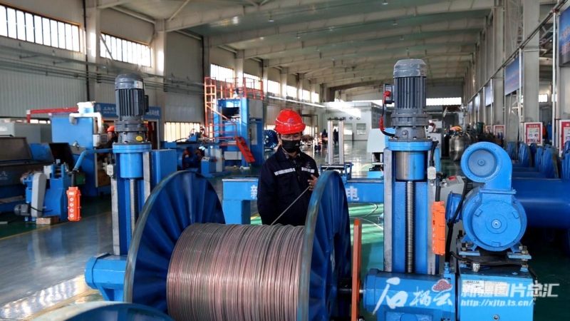 新疆新東風電纜有限公司生產(chǎn)車間內(nèi),工人正在忙碌加工產(chǎn)品。布仁巴特攝