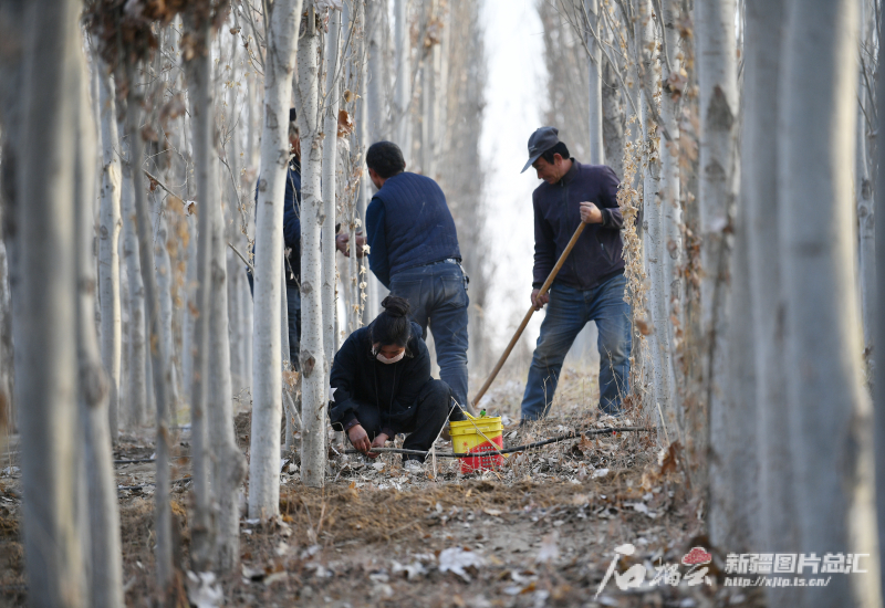 11月28日,護(hù)林員在葉城縣20萬畝生態(tài)林基地管護(hù)白楊樹。