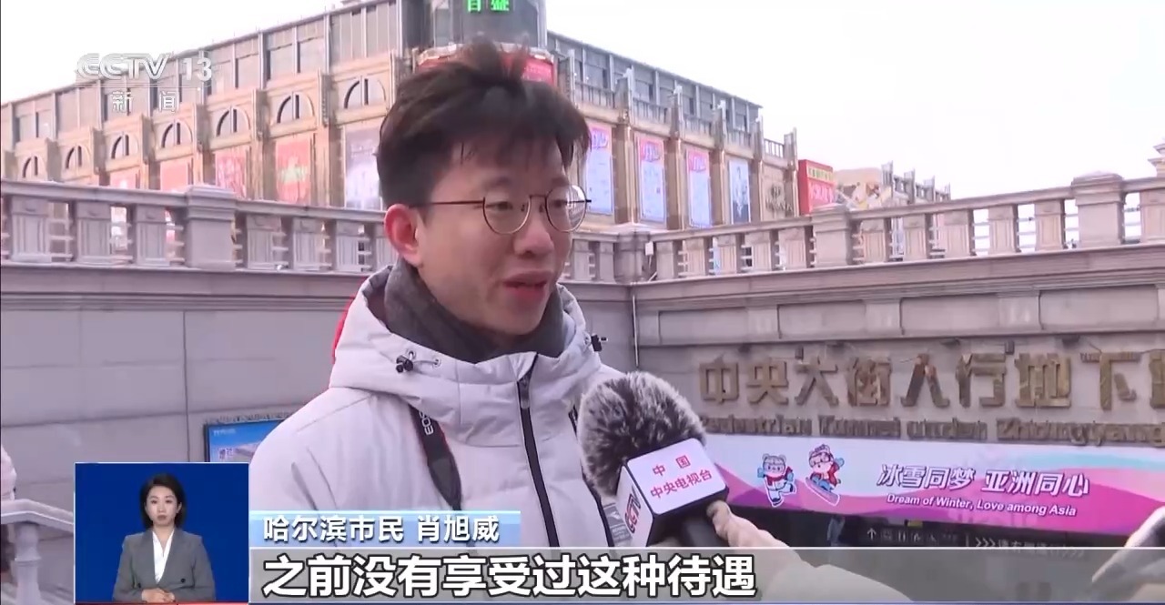 哈爾濱市民 肖旭威:我們作為本地人,雖然有時(shí)候會(huì)調(diào)侃,說“酸了”,之前沒有享受過這種待遇,但更多的是調(diào)侃。我們也希望這樣的措施多多落實(shí),讓外地的游客,在哈爾濱有更好的旅游體驗(yàn)。
