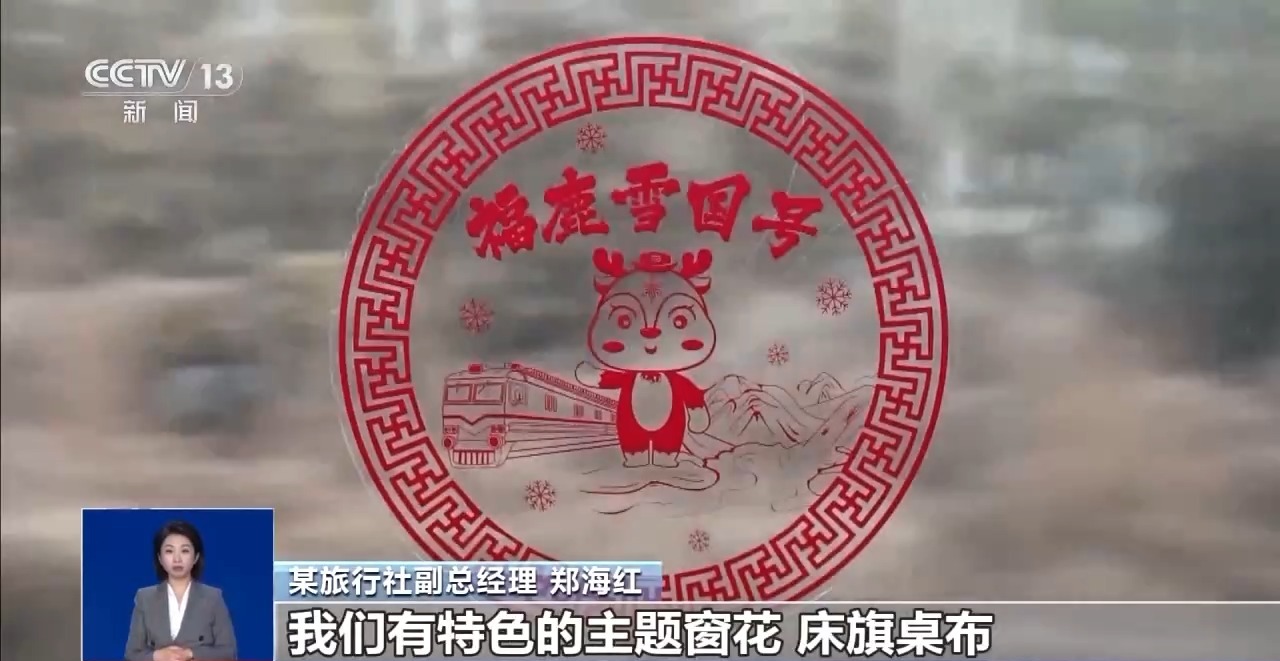 某旅行社副總經(jīng)理 鄭海紅:在列車內(nèi)部做了一個(gè)整體裝飾,我們有特色的主題窗花,床旗桌布,讓南方的“小金豆”來到黑龍江,不但能夠賞冰看雪,還能體驗(yàn)到我們黑龍江獨(dú)有的鄂倫春的非遺,感受冰雪給大家?guī)淼恼鸷场?/p>