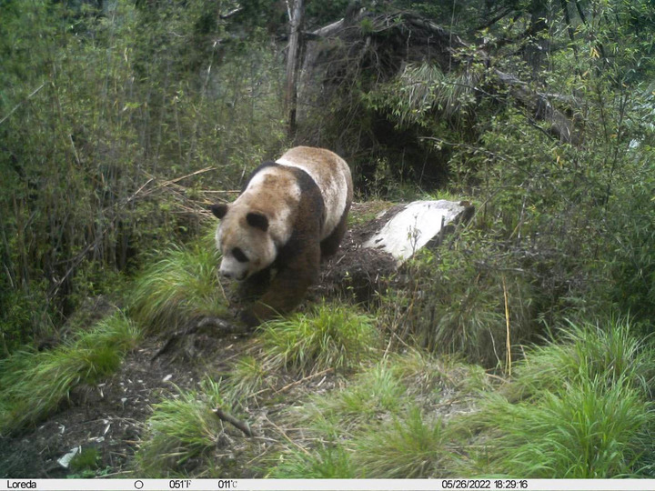 這是大熊貓國(guó)家公園唐家河片區(qū)白熊坪區(qū)域的一臺(tái)紅外相機(jī)拍攝到的野生大熊貓畫面(2022年5月26日攝)。新華社發(fā)(大熊貓國(guó)家公園唐家河片區(qū)供圖)