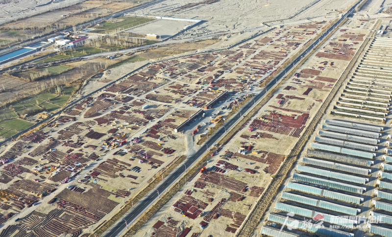 315國(guó)道策勒縣段兩側(cè)的千畝紅棗晾曬場(chǎng)(11月29日無(wú)人機(jī)攝)。