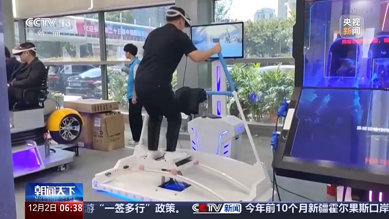 某數(shù)字機(jī)器企業(yè)負(fù)責(zé)人 孫莉:通過身體的左右擺動,戴著VR眼鏡頭盔,就可以實(shí)時體驗極限的滑雪運(yùn)動。銷量也是以15%的速度在增長。