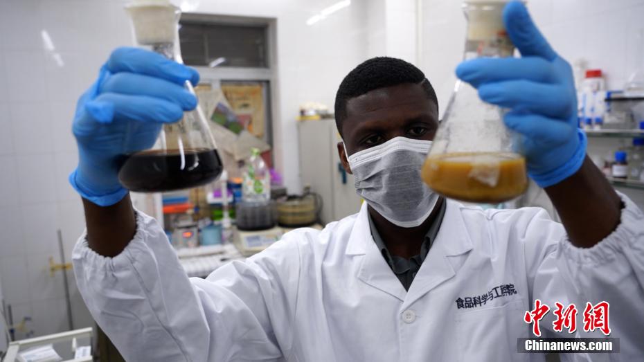 威廉(William)來自非洲加納首都阿克拉,本科畢業(yè)于加納的發(fā)展研究大學營養(yǎng)學專業(yè),在做了兩年營養(yǎng)健康醫(yī)師后,他對兒童營養(yǎng)不良問題感到擔憂,于是萌生了提升學歷并對營養(yǎng)學做進一步研究的想法。圖為廣東廣州,威廉在華南理工大學實驗室里做實驗。