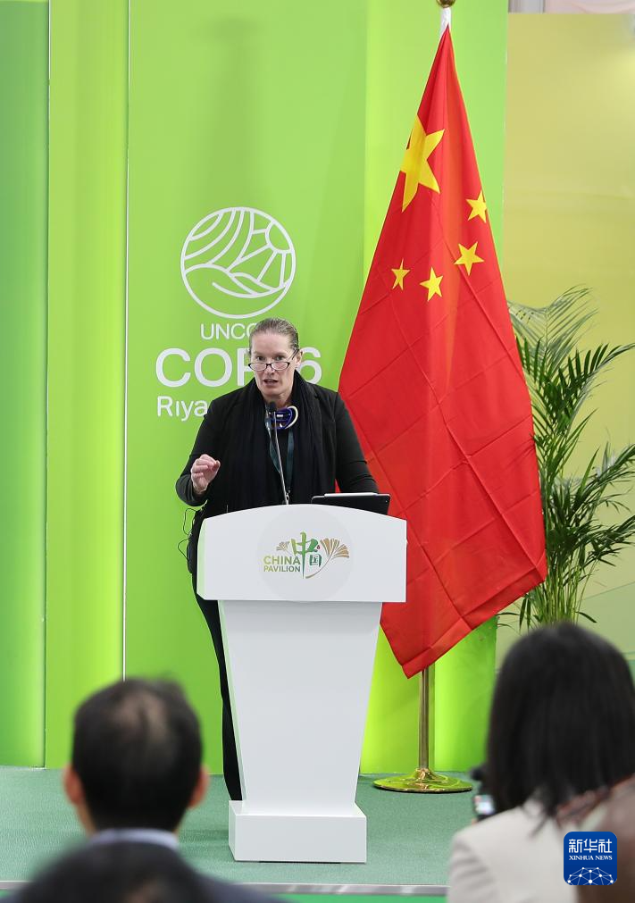 12月4日,在沙特阿拉伯利雅得,世界銀行全球環(huán)境局局長(zhǎng)瓦萊麗·?;凇堵?lián)合國(guó)防治荒漠化公約》第十六次締約方大會(huì)(COP16)中國(guó)館舉辦的邊會(huì)上發(fā)言。新華社記者 王東震 攝