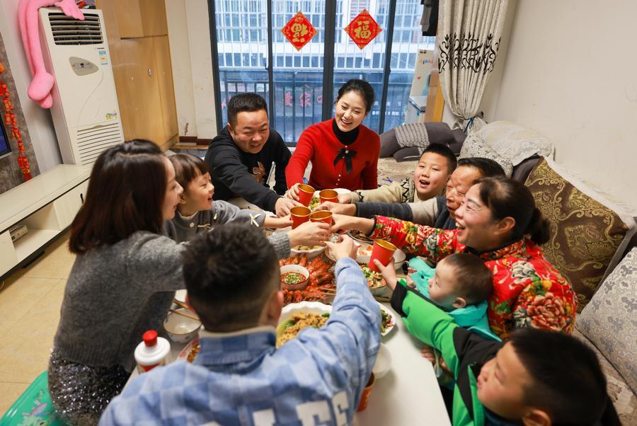 2024年2月9日,貴州省遵義市正安縣一戶居民在家中吃年夜飯。 新華社發(fā)(趙永章 攝)