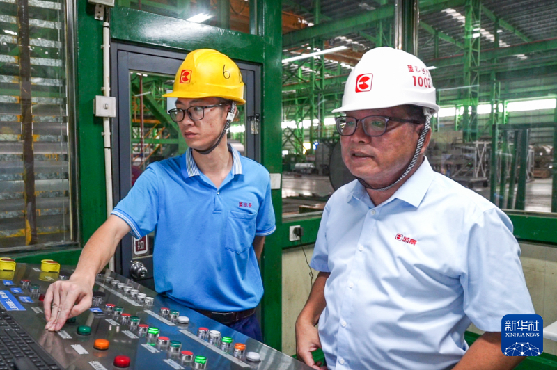陳富澤在車間檢查設(shè)備運行情況。新華網(wǎng) 肖和勇 攝