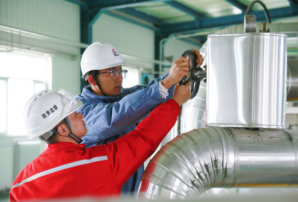 2024年2月22日,在新疆庫(kù)車(chē)市,中國(guó)石化新星新疆綠氫新能源有限公司工作人員對(duì)設(shè)備進(jìn)行巡檢。新華社發(fā)(吐?tīng)査伞ね泻?攝)